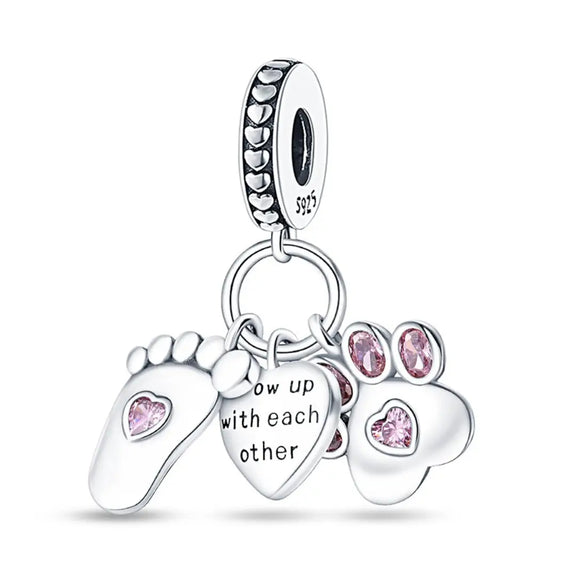 Celebrate the special bond between a baby and a furry friend with the Baby Foot and Paw Triple Da... Read moreCelebrate the special bond between a baby and a furry friend with the Baby Foot and Paw Triple Dangle Charm. Featuring a silver baby footprint, a pawprint, and a heart-shaped charm, it's a heartwarming tribute to the love shared between family and pets. Perfect for charm collectors and animal lovers alike.
