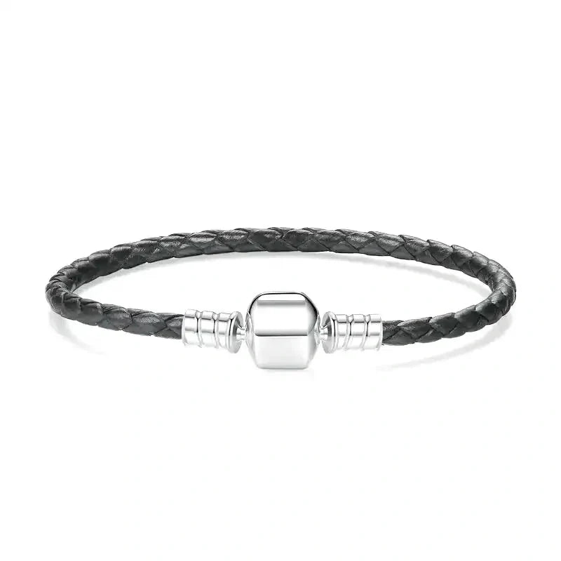 Loading...Sale Sold outRegular price $29.70 USDRegular priceUnit price / perSale price $29.70 USDThis Black Leather Charm Bracelet is the perfect jewelry gift for anyone who loves style and personalization. Crafted from Sterling Silver, it’s a Pandora compatible bracelet that fits all Pandora charms, making it a versatile addition to your collection.