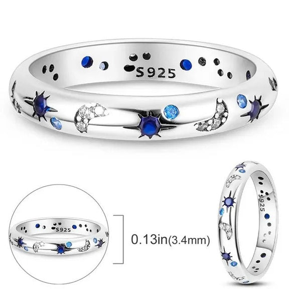Embrace the cosmos with the Sterling Silver Moon and Stars Celestial CZ Ring, a stunning piece th... Read moreEmbrace the cosmos with the Sterling Silver Moon and Stars Celestial CZ Ring, a stunning piece that combines exquisite design with the timeless appeal of sterling silver. This enchanting ring features delicate celestial motifs, making it a perfect choice for both everyday wear and special occasions. Crafted from high-quality sterling silver, it radiates elegance and charm, ensuring that it stands out in any jewelry collection. The shimmering cubic zirconia stones add a touch of sparkle, enhancing the ring's unique aesthetic. With its versatile design, this ring makes an ideal gift for birthdays, anniversaries, or simply to treat yourself. Explore our collection to find complementary pieces such as the Sterling Silver Moon and Stars Ring with zaricon, the Sterling Silver Stars and Zircom double Ring, and the Sterling Silver Moon and Star zircom Open Ring. Enjoy Free Shipping on all orders and elevate your jewelry collection with this celestial-inspired ring!Couldn't load pickup availability