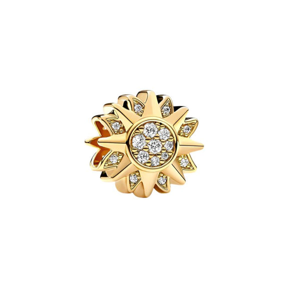 View full detailsCharm FeaturesThe Radiant Gold Sun Charm with Crystals Compatible with Pandora Bracelets with gold color reflects an elegant style for your bracelet.
