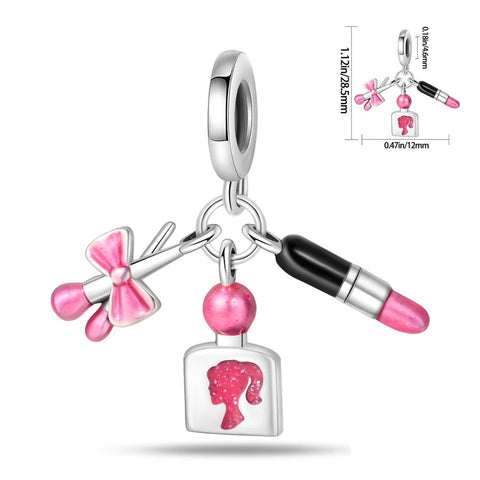 View full detailsCharm FeaturesThe Fun Makeup Charm with Lipstick and Perfume Bottle Compatible with Pandora Bracelets with pink & silver color reflects an elegant style for your bracelet.