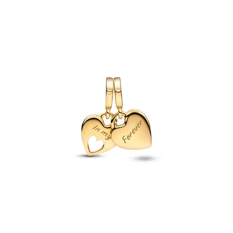 k Gold-Plated Mother-Daughter Double Heart Charm - Celebrate a forever bond with this Mother-Daug... Read morek Gold-Plated Mother-Daughter Double Heart Charm - Celebrate a forever bond with this Mother-Daughter Double Heart Charm. Engraved with "Mother," "Daughter," "Forever," and "In my heart," it's a beautiful reminder of love.