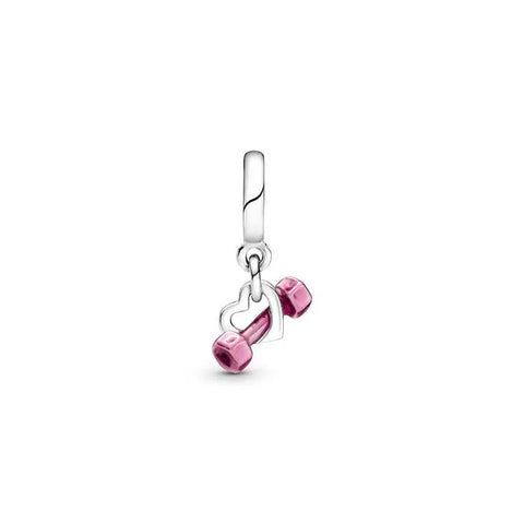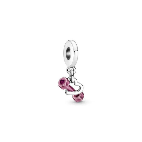 Dumbbell & Heart Dangle Charm - Show your passion for fitness with this Dumbbell & Heart ... Read moreDumbbell & Heart Dangle Charm - Show your passion for fitness with this Dumbbell & Heart Charm. Crafted in sterling silver with pink enamel, it's a celebration of strength and joy in movement, ideal for fitness lovers.