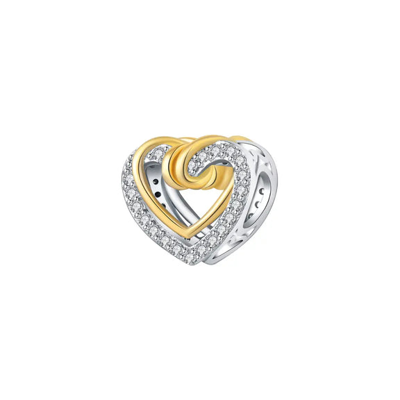 The Forever Together Heart Charm captures the strength and unity of love with its design of two i... Read moreThe Forever Together Heart Charm captures the strength and unity of love with its design of two interlocking hearts-one in warm gold and the other in shimmering silver. Adorned with dazzling zircon stones, this charm is a perfect representation of harmony and commitment. Whether as a gift for a loved one or a personal symbol of enduring love, this charm adds elegance and sentiment to any collection, making it a timeless reminder of the connection that grows stronger with every heartbeat.