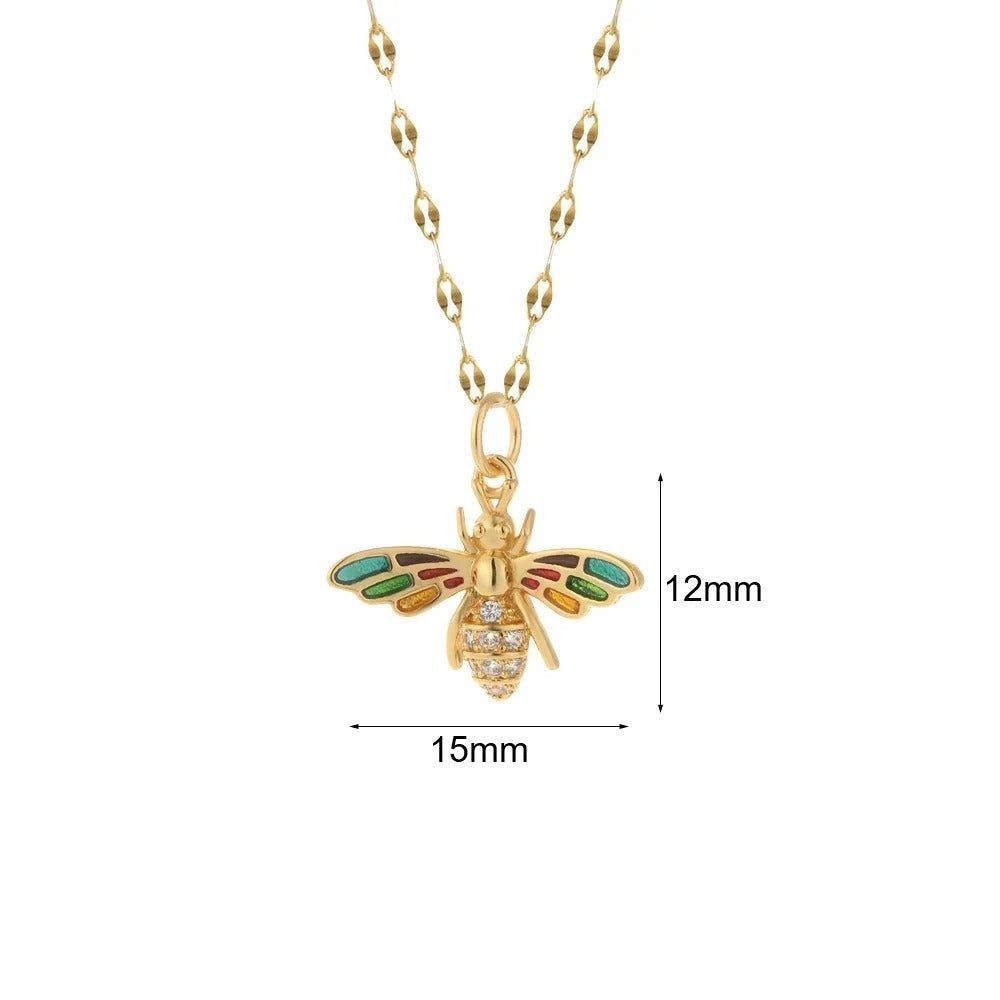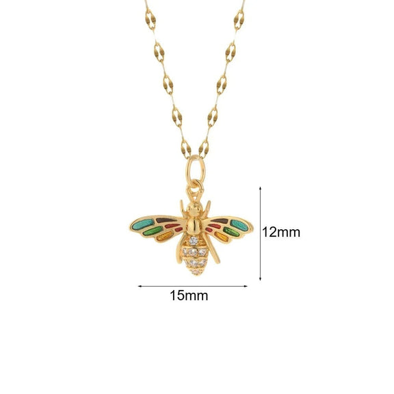 Embrace the buzz with our Gold-Plated Bee Pendant Necklace. This delightful piece features a gold... Read moreEmbrace the buzz with our Gold-Plated Bee Pendant Necklace. This delightful piece features a gold-plated chain and a bee pendant adorned with colorful enamel wings and sparkling crystal accents. Measuring mm by mm, the pendant captures the intricate details of a bee, adding a touch of nature-inspired charm to your look. Perfect for both everyday wear and special occasions, this necklace is a stylish way to showcase your love for nature. Crafted from high-quality materials, it's designed for durability and lasting beauty. Add a touch of whimsy to your jewelry collection - order now!