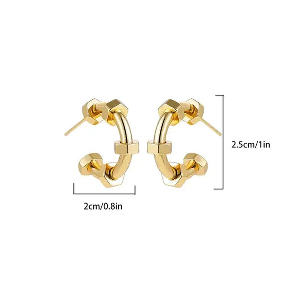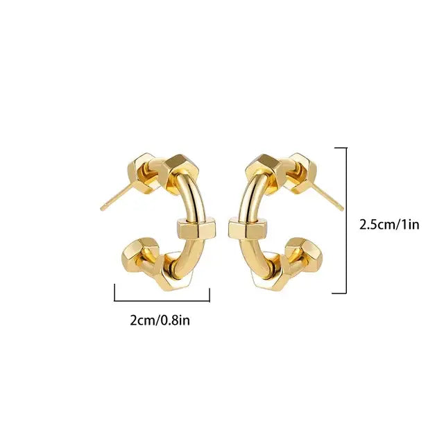 Elevate your accessory game with our Gold Hexagon Hoop Earrings, crafted from high-quality Sterli... Read moreElevate your accessory game with our Gold Hexagon Hoop Earrings, crafted from high-quality Sterling Silver. These modern geometric earrings feature a unique hexagon design that adds a chic touch to any outfit, making them a versatile addition to your jewelry collection. The polished finish reflects light beautifully, ensuring you stand out at any occasion. Whether dressing up for a night out or adding flair to your everyday look, these earrings are a must-have. Gift them to a loved one or treat yourself-either way, you'll appreciate their elegance and style. Plus, enjoy Free Shipping on your order! For more stunning options, check out our Double Hoop Gold Earrings - Modern Chic Jewelry or Faceted Gold Stud Earrings - Chic Geometric Jewelry.Couldn't load pickup availability