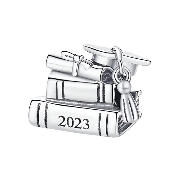 Celebrate academic achievements with our Sterling Silver Graduation Charm. This charm features ... Read moreCelebrate academic achievements with our Sterling Silver Graduation Charm. This charm features a stack of books, a diploma, and a graduation cap, all crafted from high-quality sterling silver. The year "" is engraved on the books, making it a perfect keepsake for recent graduates. This charm is ideal for marking significant milestones and celebrating the hard work and dedication that led to success. Whether you're gifting it to a proud graduate or adding it to your own collection as a reminder of your achievements, this charm is a beautiful and meaningful way to commemorate this special moment. The charm's intricate details and timeless design ensure that it will be cherished for years to come. Add this meaningful piece to your collection today and celebrate the triumphs of academic success!