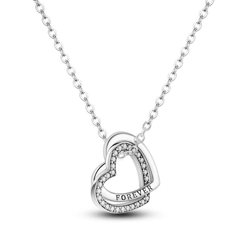 Show your romantic side with the Intertwined Heart Necklace. This exquisite piece features two in... Read moreShow your romantic side with the Intertwined Heart Necklace. This exquisite piece features two intertwined hearts crafted from sterling silver, symbolizing eternal love and connection. The intricate design and polished finish make it a standout piece, perfect for anniversaries, Valentine's Day, or just because. The necklace adds a touch of romance to any outfit, whether you're dressing up for a special occasion or adding a touch of elegance to your everyday look. The adjustable chain ensures a perfect fit, making it comfortable and versatile. Crafted from high-quality materials, this necklace is designed to last and be cherished for years to come. Celebrate love and make a lasting impression with this beautiful necklace today!