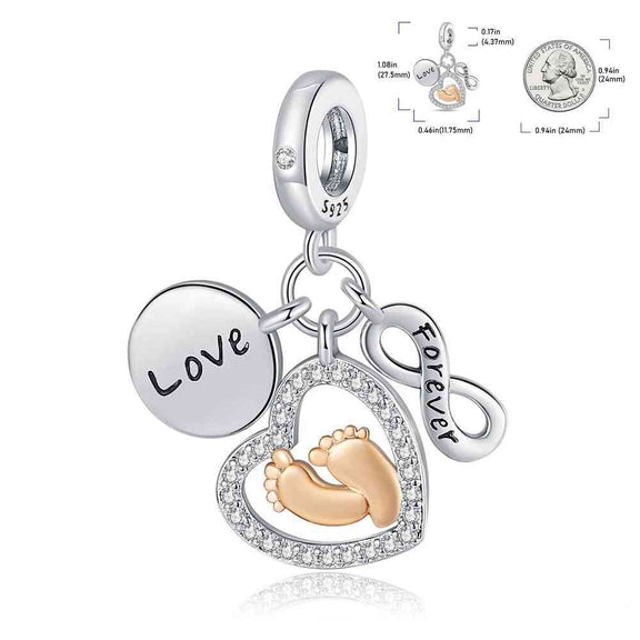 View full detailsCharm FeaturesThe Love Forever Charm with Baby Feet Compatible with Pandora Bracelets with silver & rose-gold color reflects an elegant style for your bracelet.