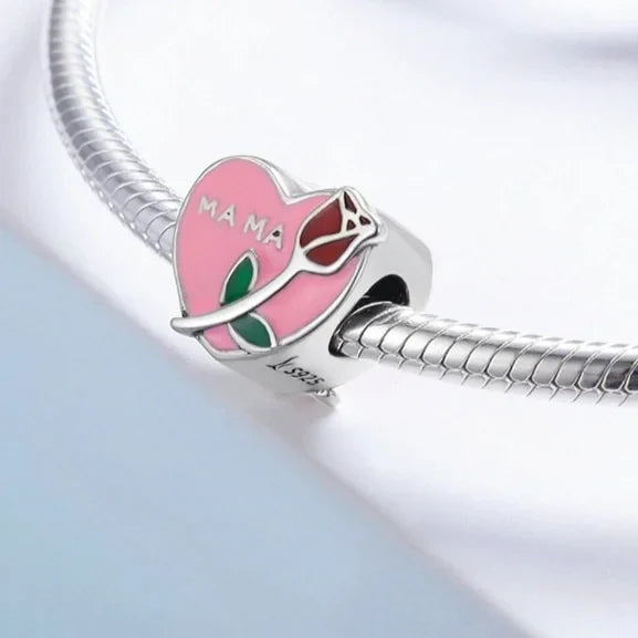 Compatible with Pandora bracelets, the Mama Rose Charm serves as a timeless reminder of the unconditional love that blossoms between a mother and her child.