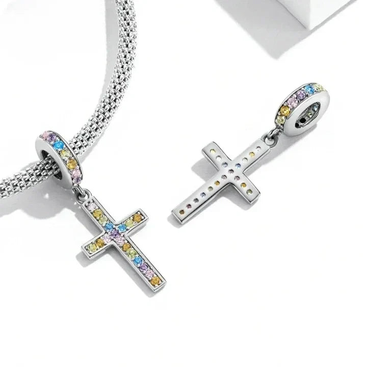 Embrace the spectrum of faith and let your beliefs shine bright with our Multicolor Cross Charm.