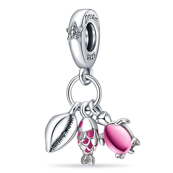 View full detailsCharm FeaturesThe Ocean Dream Sterling Silver Charm with Shell, Fish, and Turtle Compatible with Pandora Bracelets with silver & pink color reflects an elegant style for your bracelet.