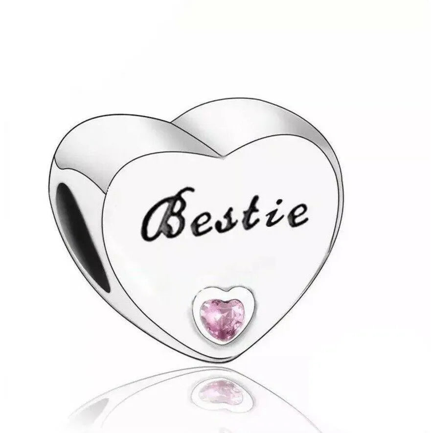 View full detailsCharm FeaturesThe Sterling Silver Bestie Pink CZ Heart Bead Charm Compatible with Pandora Bracelets with silver color reflects an elegant style for your bracelet.