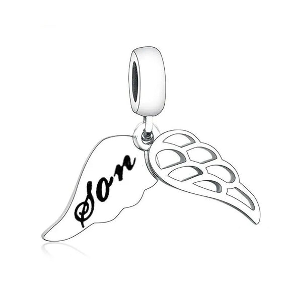 1 / of 1Sterling Silver Son Engraved Angel Wings Dangle Charm
