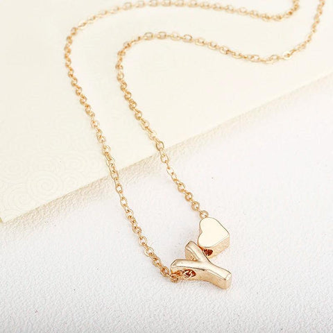 Discover the elegance of our Personalized Gold Necklace featuring a heart and an initial letter c... Read moreDiscover the elegance of our Personalized Gold Necklace featuring a heart and an initial letter charm, available from A to Z. Crafted with high-quality materials, this necklace offers a timeless appeal suitable for any occasion. The delicate gold chain beautifully complements the charming pendants, making it a perfect gift for birthdays, anniversaries, or simply to show appreciation. Whether you choose your own initial or a loved one's, this necklace adds a personal touch to your jewelry collection. Enhance your style with this unique piece and let it become a staple in your wardrobe. Add a touch of personalization today!
