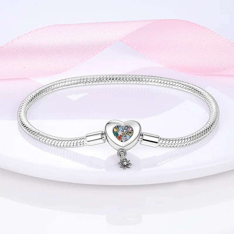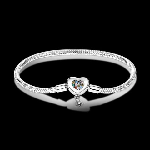 View full detailsCharm FeaturesThe Rainbow Heart Sterling Silver Snake Chain Charm Bracelet Compatible with Pandora Bracelets with color reflects an elegant style for your bracelet.
