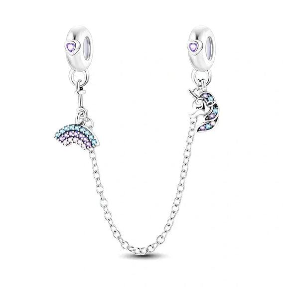 View full detailsCharm FeaturesThe Rainbow Unicorn Safety Chain Compatible with Pandora Bracelets with silver color reflects an elegant style for your bracelet.
