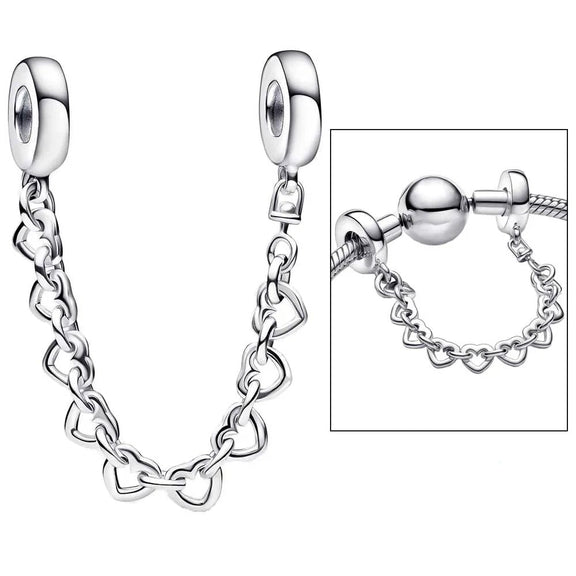 Keep your cherished charms secure with this Sterling Silver Safety Chain Charm, a practical and ... Read moreKeep your cherished charms secure with this Sterling Silver Safety Chain Charm, a practical and elegant accessory for your jewelry collection. This charm features delicate heart-shaped links, crafted from high-quality sterling silver, that attach to your bracelet to prevent loss of your beloved charms. The safety chain not only adds a layer of security but also enhances the overall elegance of your bracelet, ensuring that your charms stay in place while adding a touch of style. Perfect for those who want to protect their investment and keep their jewelry looking flawless, this safety chain is both functional and beautiful. Whether you're wearing it every day or for special occasions, its durable design ensures it will be a cherished part of your collection for years to come. Add this sterling silver safety chain charm to your bracelet today and enjoy both security and sophistication!