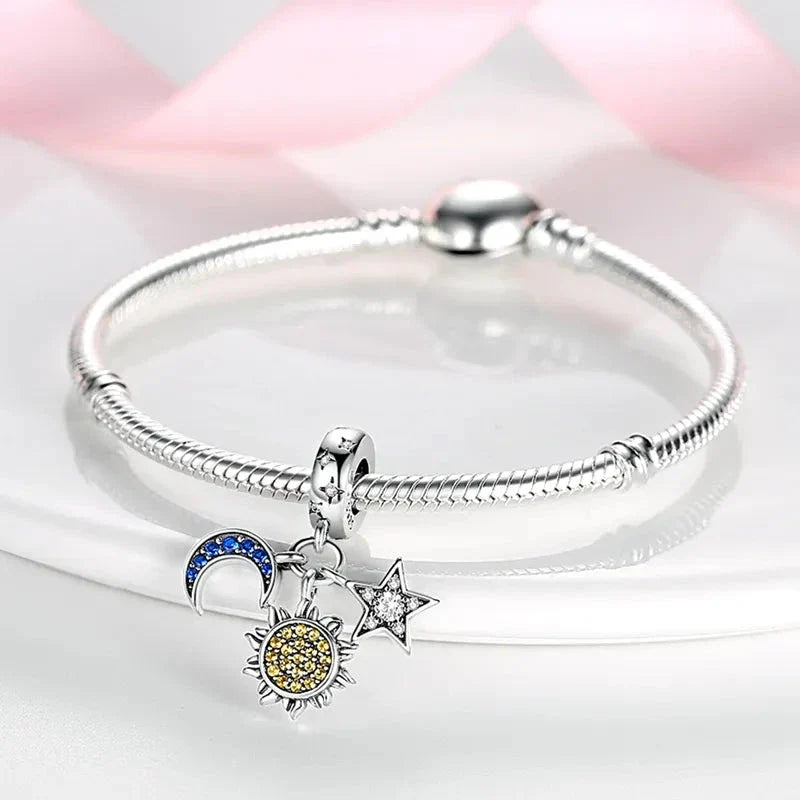 View full detailsCharm FeaturesThe Sun Moon Star Charm Compatible with Pandora Bracelets with silver color reflects an elegant style for your bracelet.