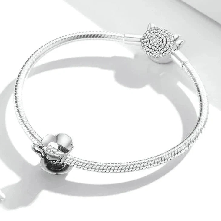 Indulge in elegance with the Tea Cup Charm, a sterling silver tribute to the art of tea. Delicate... Read moreIndulge in elegance with the Tea Cup Charm, a sterling silver tribute to the art of tea. Delicately crafted, this charm adds a refined touch to any bracelet, perfect for tea lovers and those who appreciate life's simple pleasures. Compatible with Pandora bracelets.