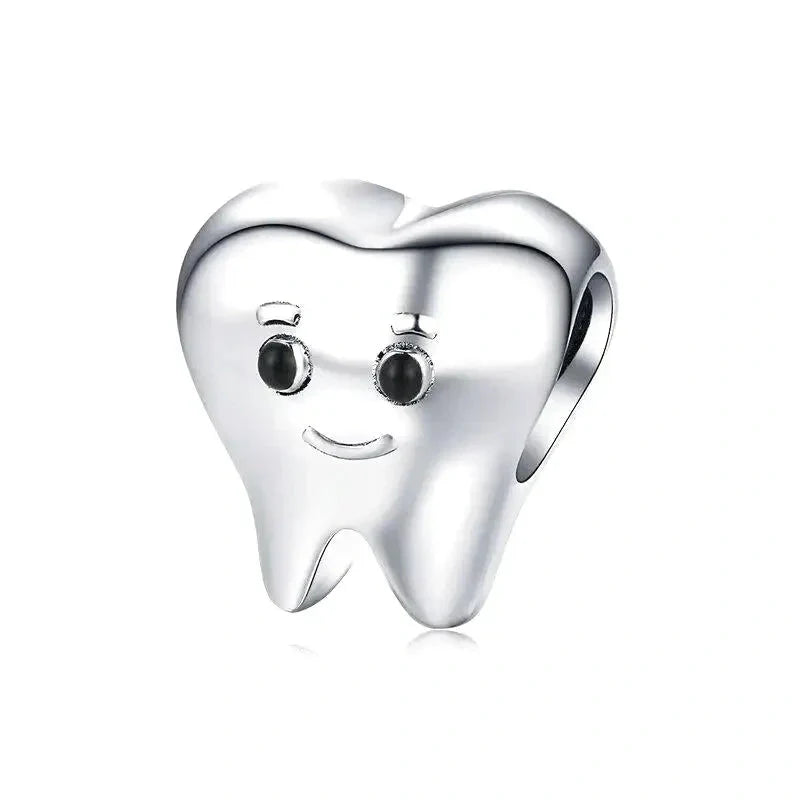 If you're passionate about dentistry or simply love unique charms, this Tooth Charm is for you. M... Read moreIf you're passionate about dentistry or simply love unique charms, this Tooth Charm is for you. Meticulously crafted from sterling silver and plated in platinum, it features adorable teeth with cartoon eyes and smooth enamel for a playful touch. Perfect as a gift for your favorite dentist or to add a quirky element to your bracelet, this charm celebrates oral health in style. Compatible with Pandora bracelets.
