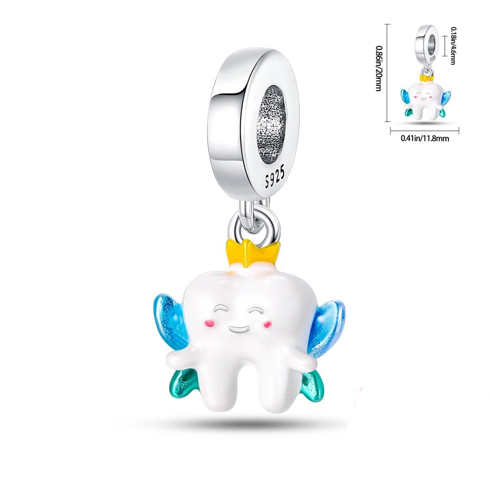 Capture the magic of childhood with this playful Tooth Fairy Charm . Featuring a smiling tooth wi... Read moreCapture the magic of childhood with this playful Tooth Fairy Charm . Featuring a smiling tooth with delicate blue enamel wings and a cheerful yellow crown, this charm is perfect for celebrating those special tooth fairy visits. It's a delightful addition to any charm bracelet, adding a whimsical and fun element to your collection. Crafted from high-quality materials, it fits most charm bracelets, making it a lasting keepsake that can be cherished for years. Whether you're marking a child's milestone or simply adding a touch of magic to your jewelry, this Tooth Fairy Charm is a wonderful choice.