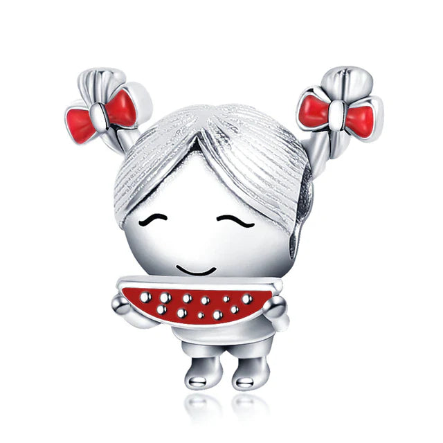 View full detailsCharm FeaturesThe Watermelon girl eating Charm Compatible with Pandora Bracelets with silver & red color reflects an elegant style for your bracelet.