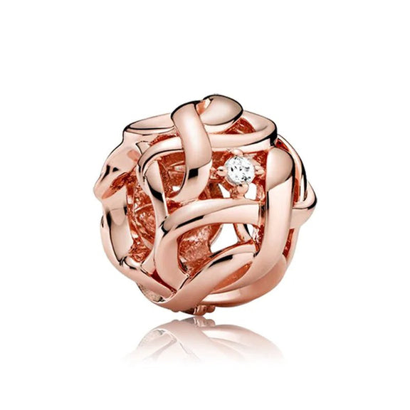 Embrace the beauty of intricate love with our "Woven Heart Charm" , meticulously crafted in rose ... Read moreEmbrace the beauty of intricate love with our "Woven Heart Charm" , meticulously crafted in rose gold with a detailed woven design that symbolizes the complexities of love and connection. This charming piece is designed to fit Pandora bracelets, making it an ideal accessory for those who appreciate the elegance and depth of woven patterns. The Woven Heart Charm is perfect for adding a romantic and sophisticated touch to your collection, whether you're celebrating a special relationship or simply want to express your affection in a unique way. The intricate weaving of the charm represents the intertwined nature of love, creating a meaningful and eye-catching addition to any bracelet. It's also a thoughtful gift for someone special, symbolizing the bond you share. Order now and let your style weave a story of love and elegance with this beautiful charm!